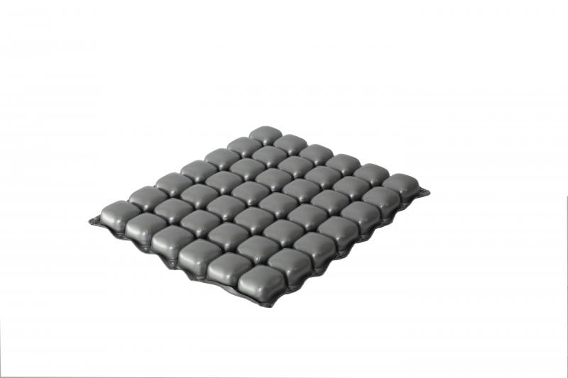 Niskoprofilowe komory dla większej stabilności: poduszka wyposażona w 7 rzędów po 6 komór powietrznych (łącznie 42 komory) o wymiarach 6 × 6 cm.Niższy profil komór (wysokość 4 cm) zwiększa powierzchnię kontaktu z ciałem i zapewnia stabilniejsze oparcie, co jest szczególnie ważne dla osób z ograniczoną mobilnością.