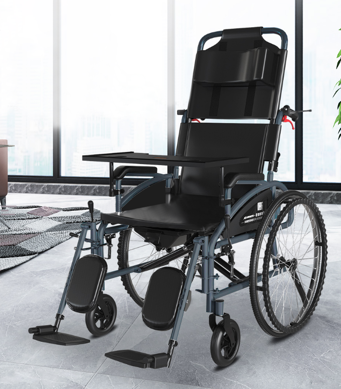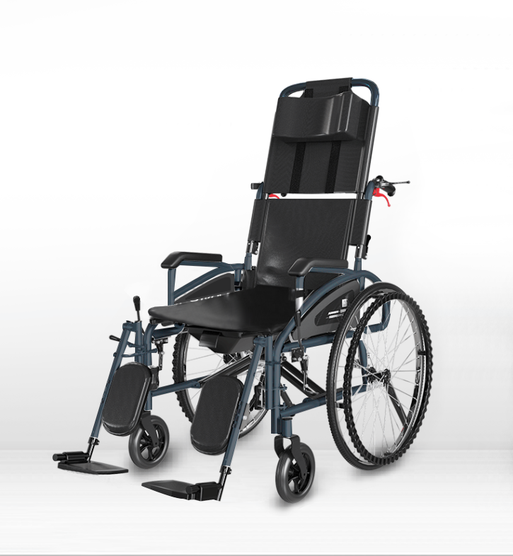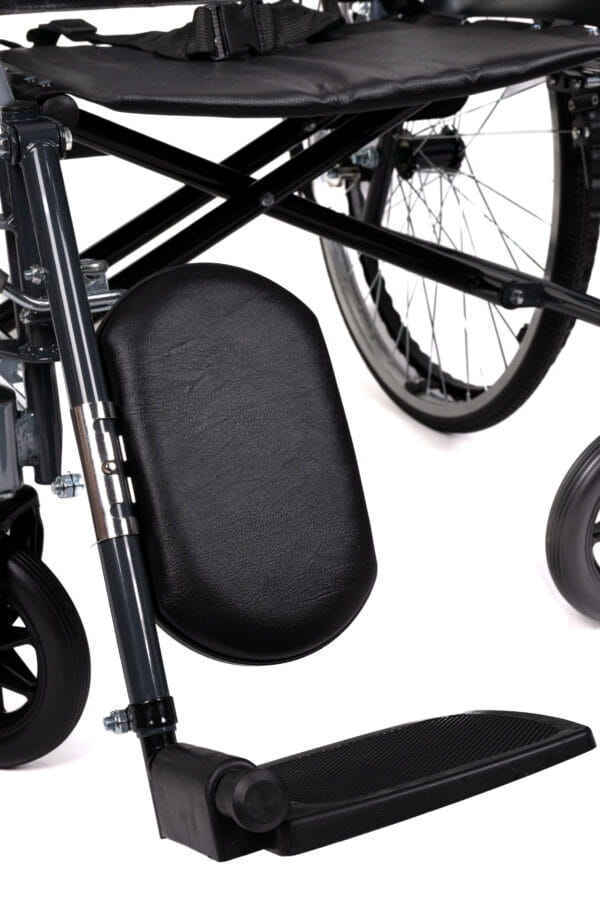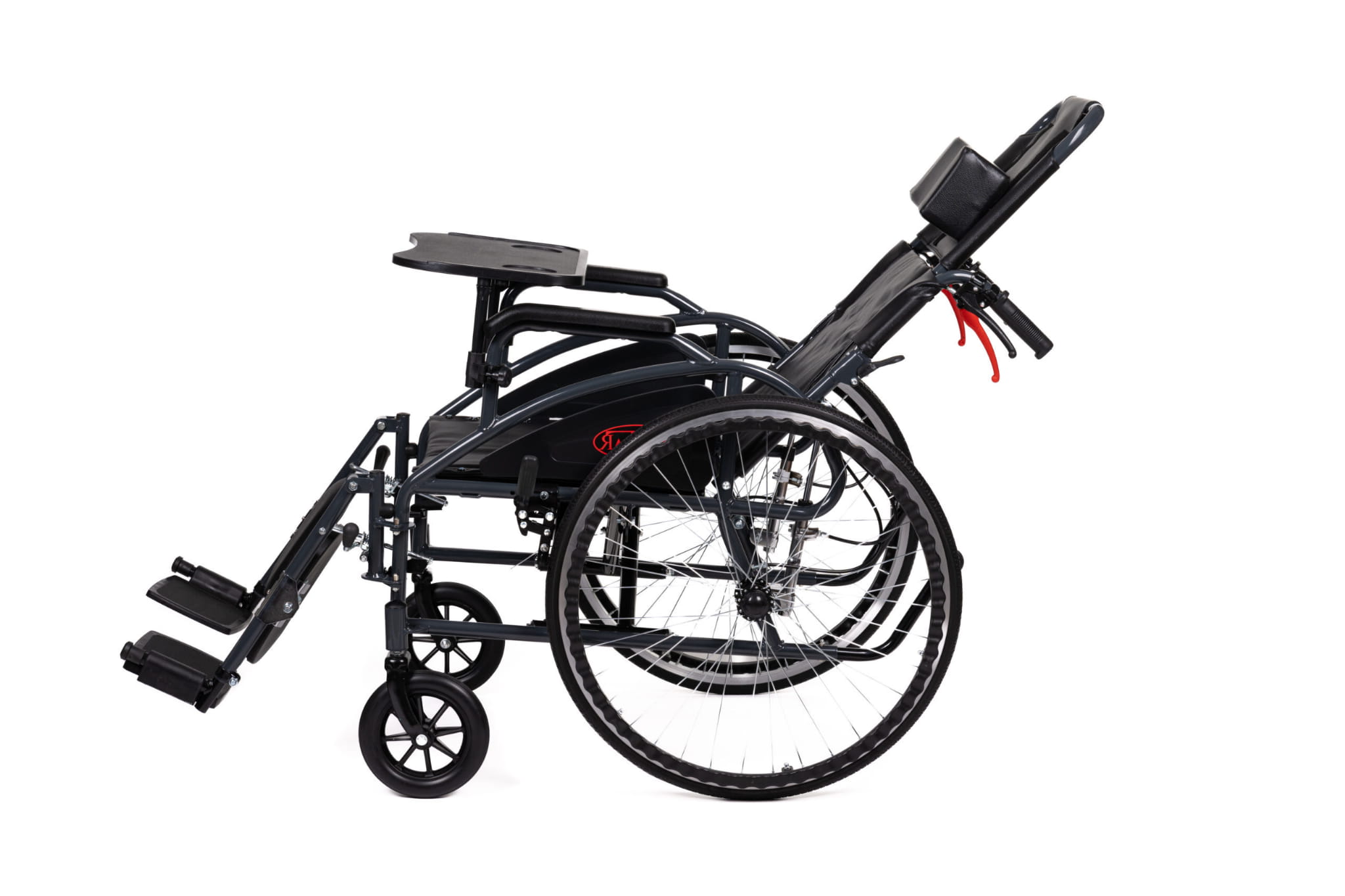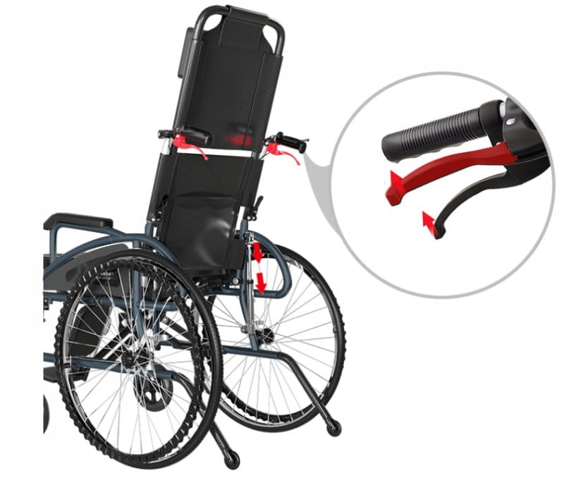 Dzięki możliwości regulacji kąta nachylenia podnóżków oraz oparcia, wózek może być dostosowany zarówno do pozycji siedzącej, jak i leżącej.