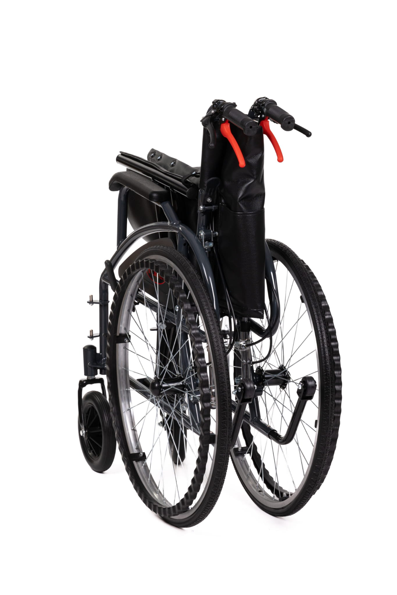 Wózek posiada funkcję składania do tyłu, co znacznie ułatwia jego przechowywanie w ograniczonych przestrzeniach. Dzięki temu można go z łatwością przetransportować lub przechowywać, nie tracąc na wygodzie użytkowania.