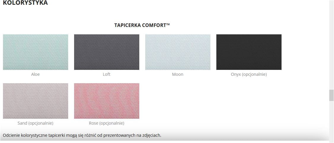 - Tapicerka ComfortTM: LOFT / MOON / ALOE.