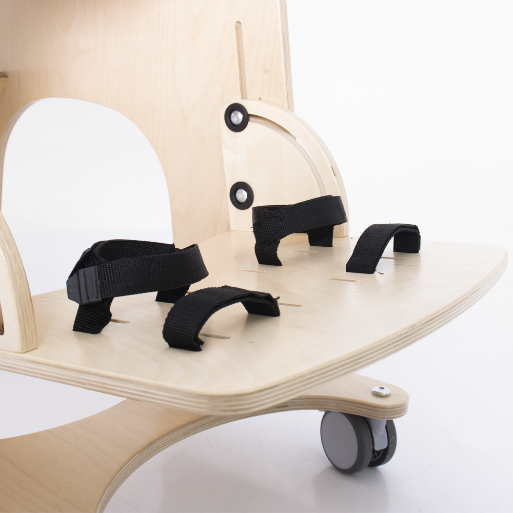 - Regulowany, składany podnóżek z paskami stabilizującymi stopy