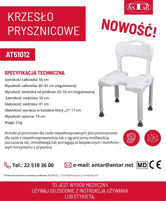 KRZESŁO PRYSZNICOWE AT51012