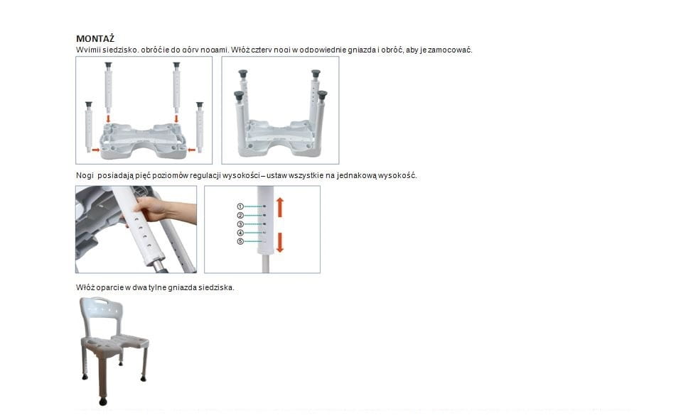 Krzesło prysznicowe jest przeznaczone dla osób z niepełnosprawnością lub z ograniczoną możliwością poruszania się. Umożliwia lub pomaga w bezpiecznym i komfortowym korzystaniu z prysznica.