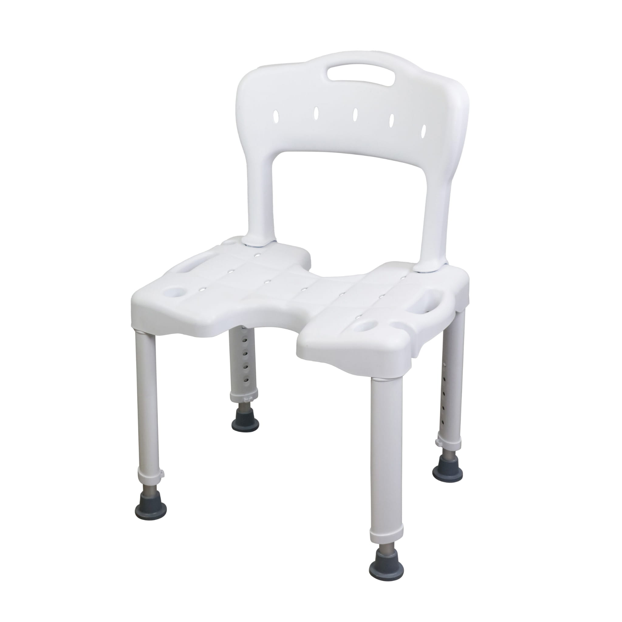 Podwójne siedzisko w kształcie litery „U” z otworami odpływowymi dla lepszej higieny.