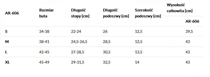 Rozmiar buta Długość stopy Długość podeszwy Szer.podeszwy Wysokość całkowita