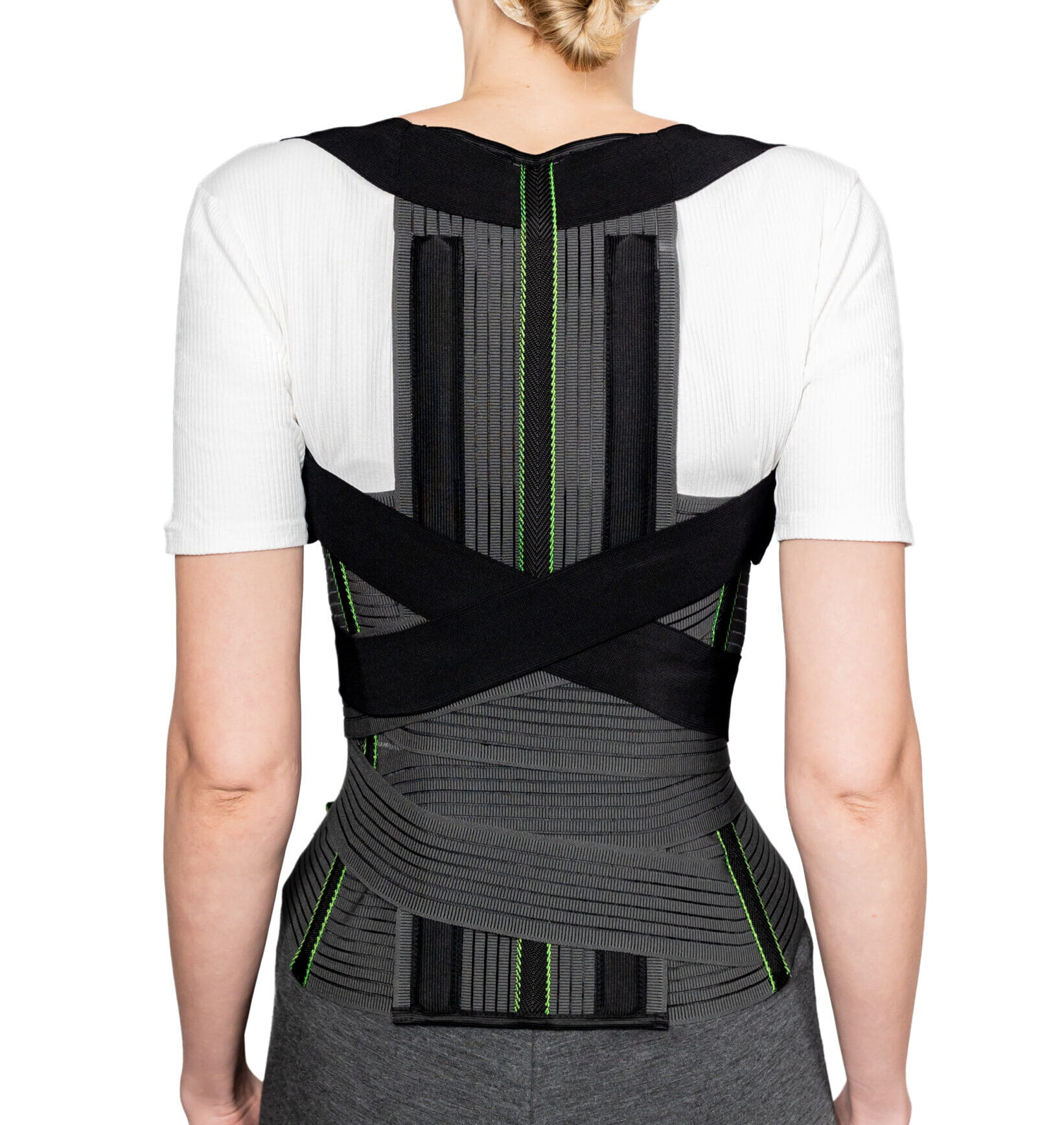 Dzięki modułowej konstrukcji, składającej się z wysokiej części lędźwiowo-krzyżowej i łatwo dopinanej części grzbietowej, orteza oferuje kompleksowe wsparcie.