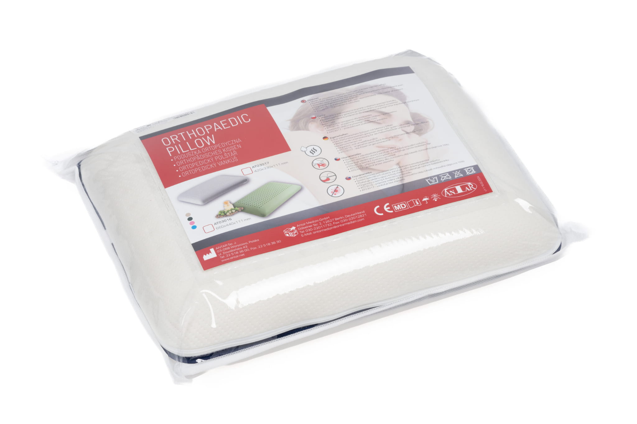 Wykonana z bezwonnego materiału z efektem pamięci kształtu, poduszka idealnie dopasowuje się do sylwetki, łagodząc bóle pleców i karku.