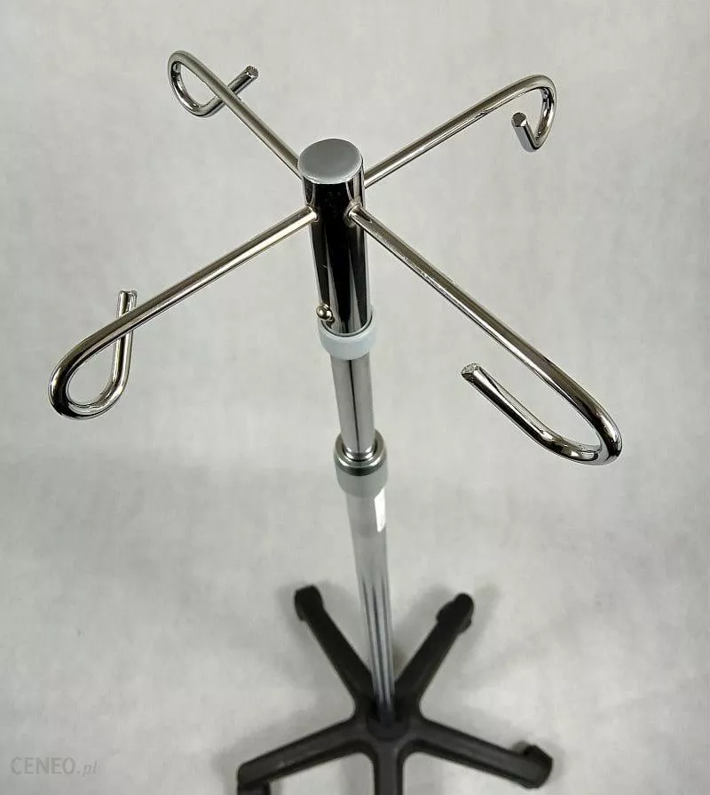 Dodatkowo, pięcioramienna podstawa zapewnia wyjątkową stabilność, a metalowe haki pozwalają na jednoczesne podłączenie kilku kroplówek.