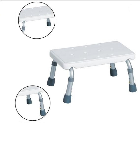 Szeroka platforma podnóżka zapewnia wygodę i komfort podczas użytkowania, a antypoślizgowe nasadki gwarantują stabilność nawet na mokrej powierzchni.