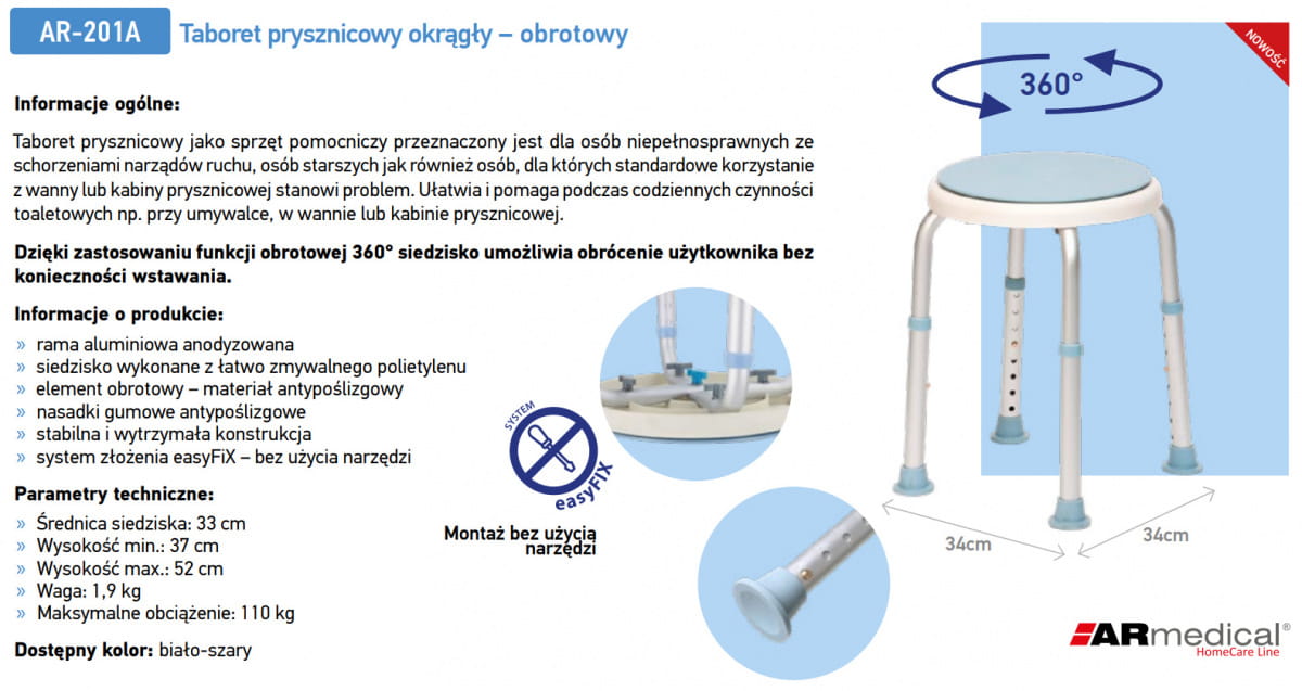 Taboret prysznicowy okrągły – obrotowy AR 201A