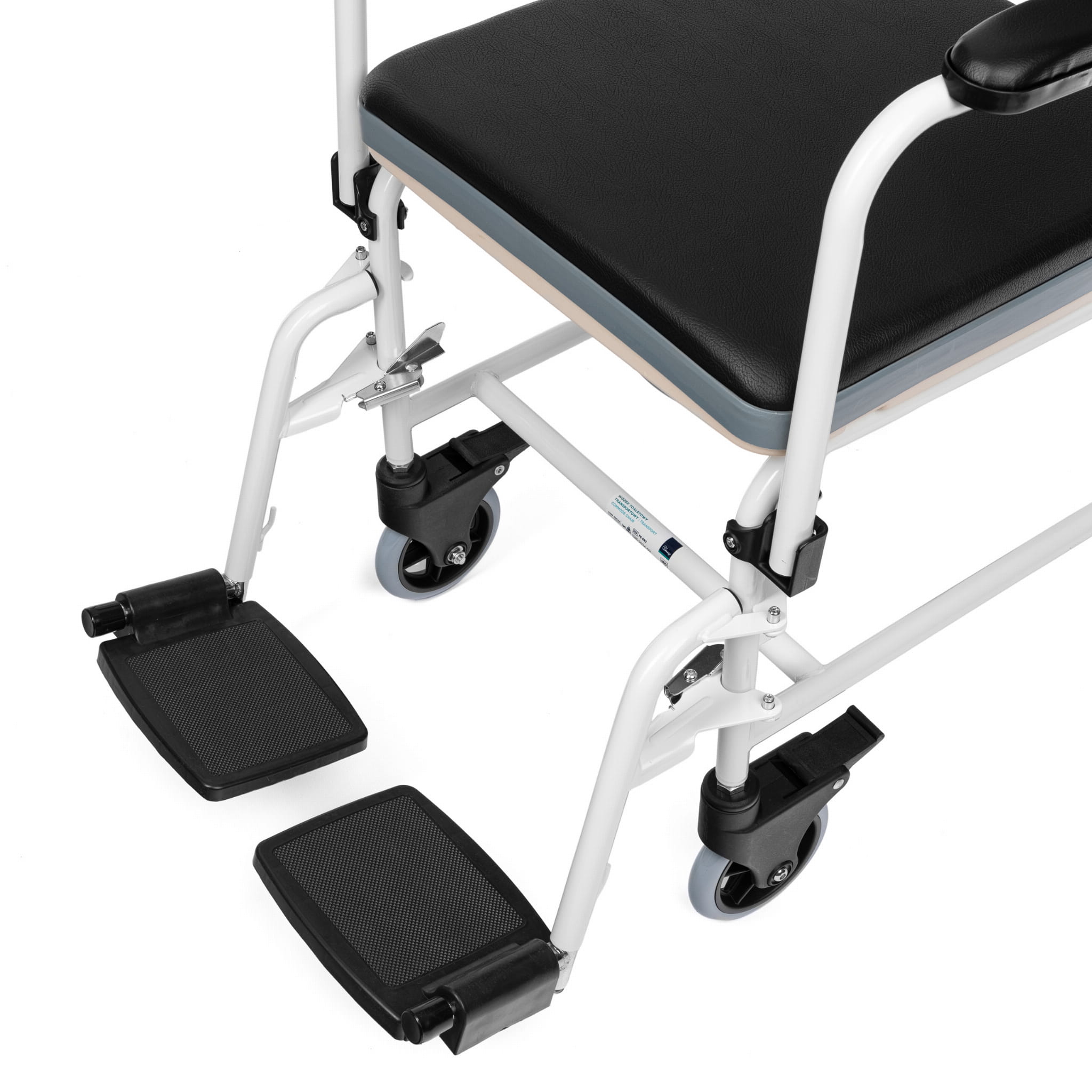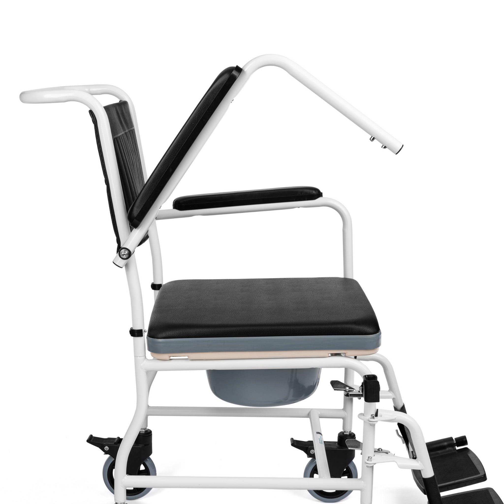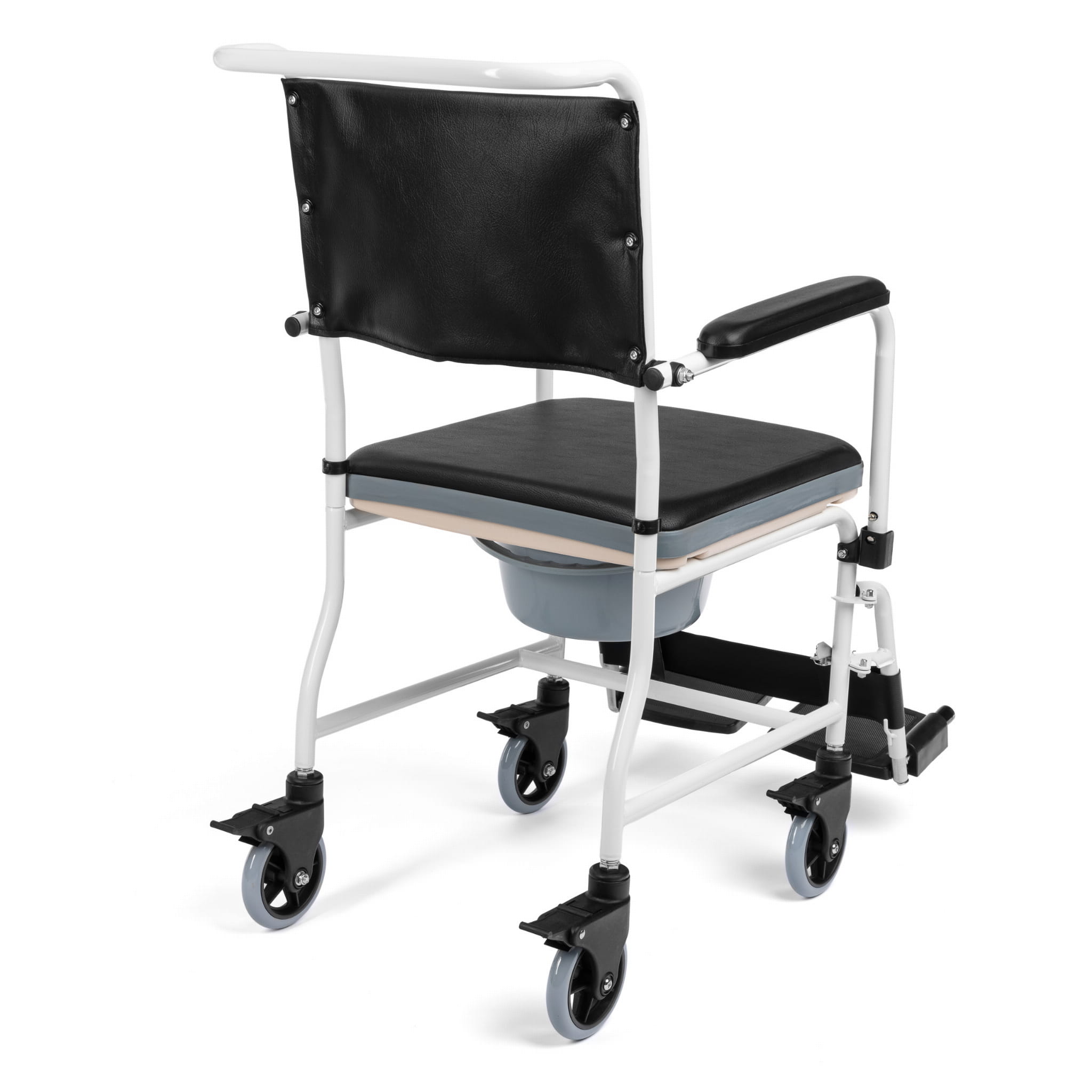 Wózek toaletowy wyposażono w 4 obrotowe kółka zaopatrzone w hamulce.