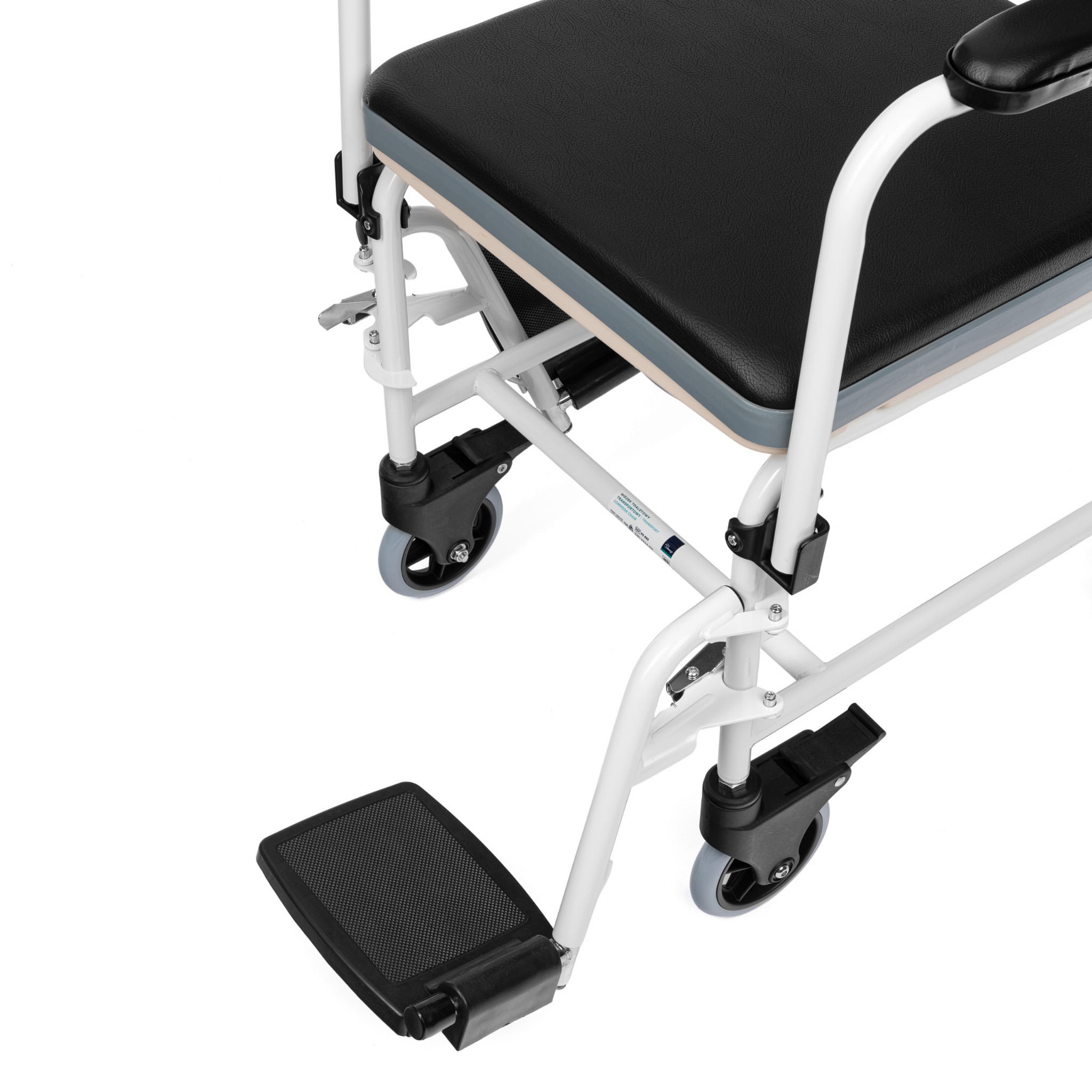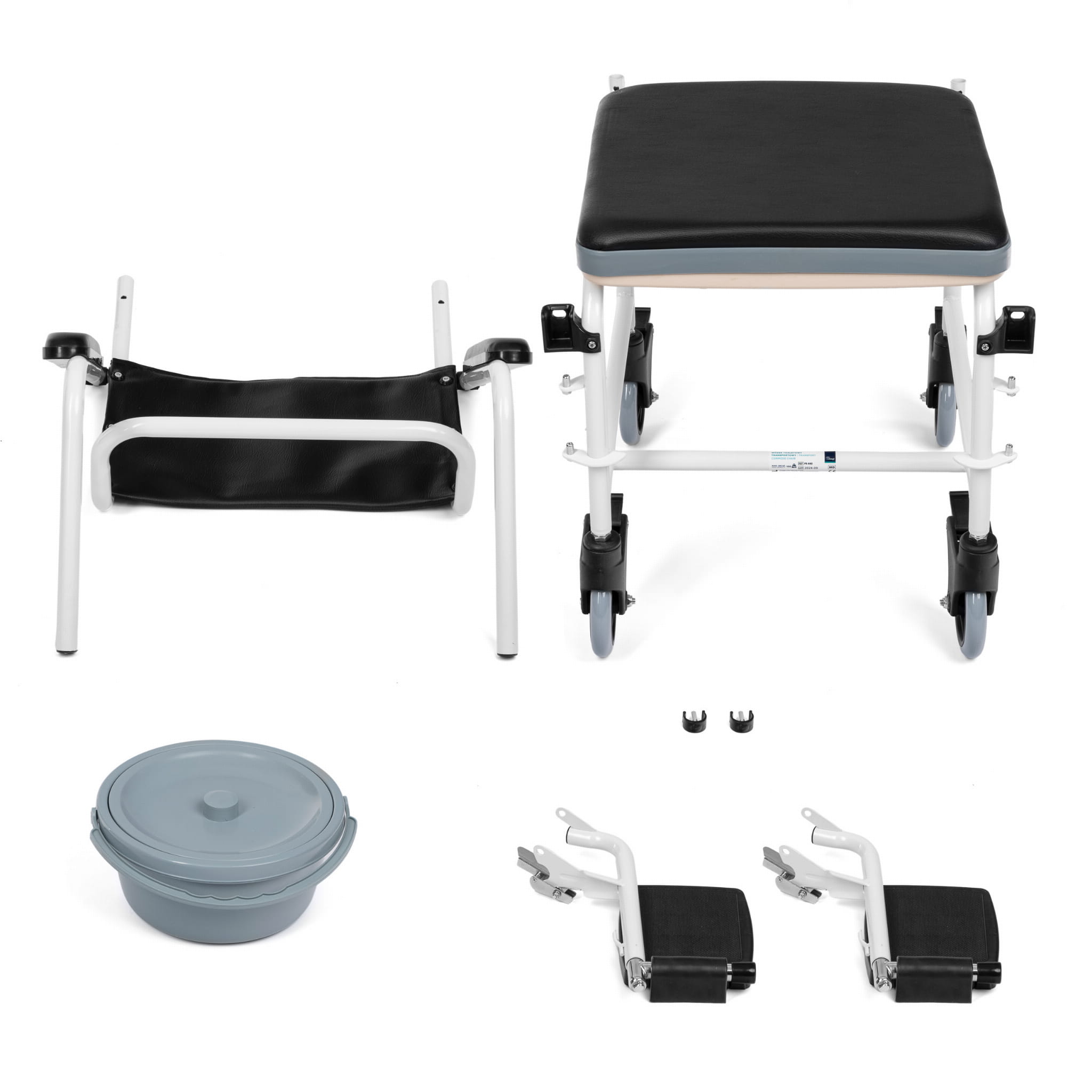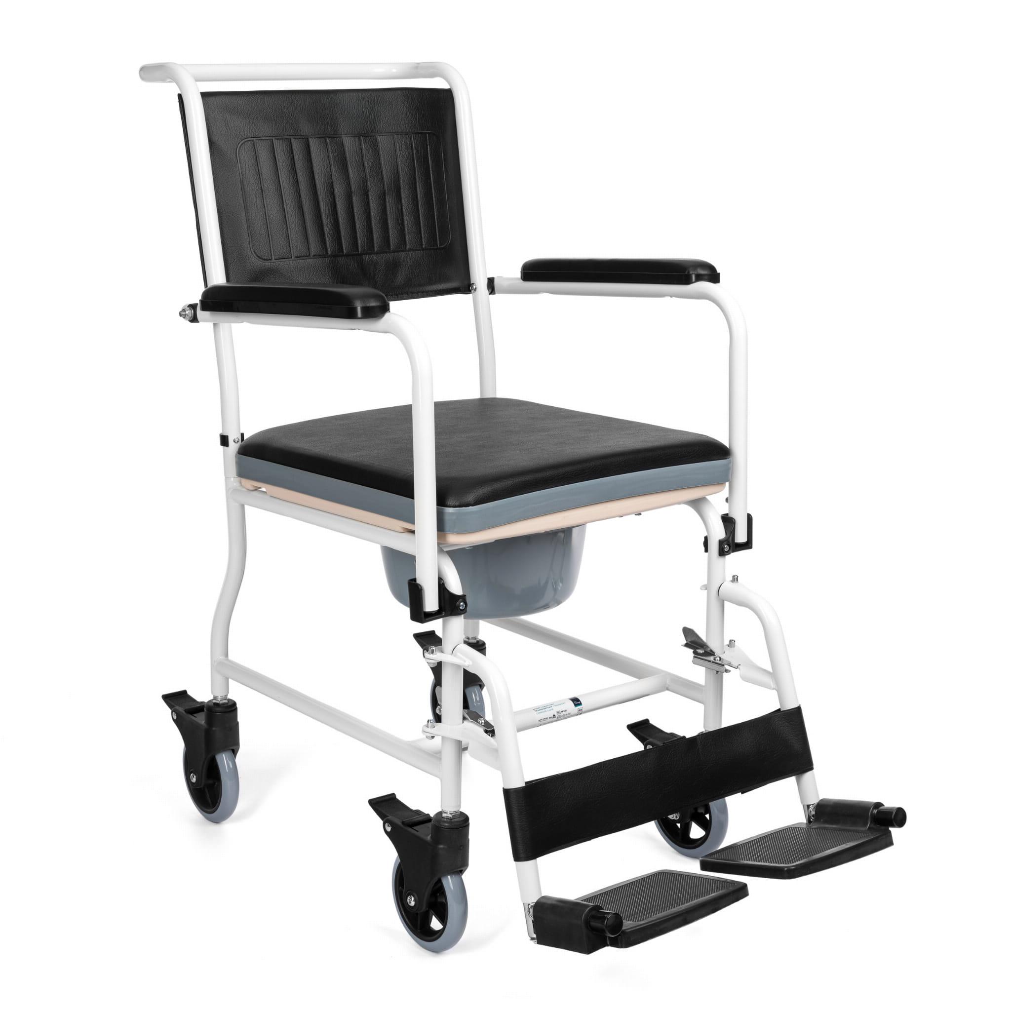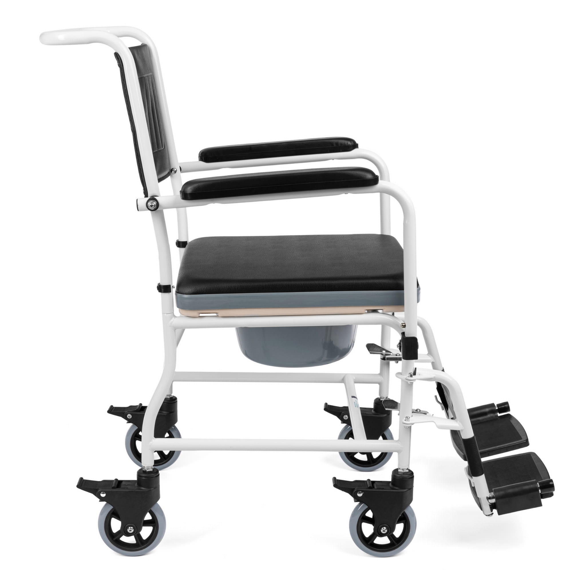 Wózek toaletowy wyposażono w 4 obrotowe kółka zaopatrzone w hamulce.