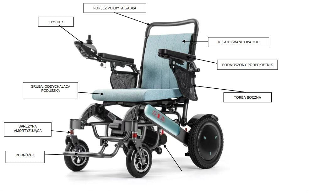 Dzięki lekkiej konstrukcji (29,5 kg) wózek jest łatwy w transporcie i przechowywaniu, a jego ergonomiczne rozwiązania gwarantują wygodę użytkowania.