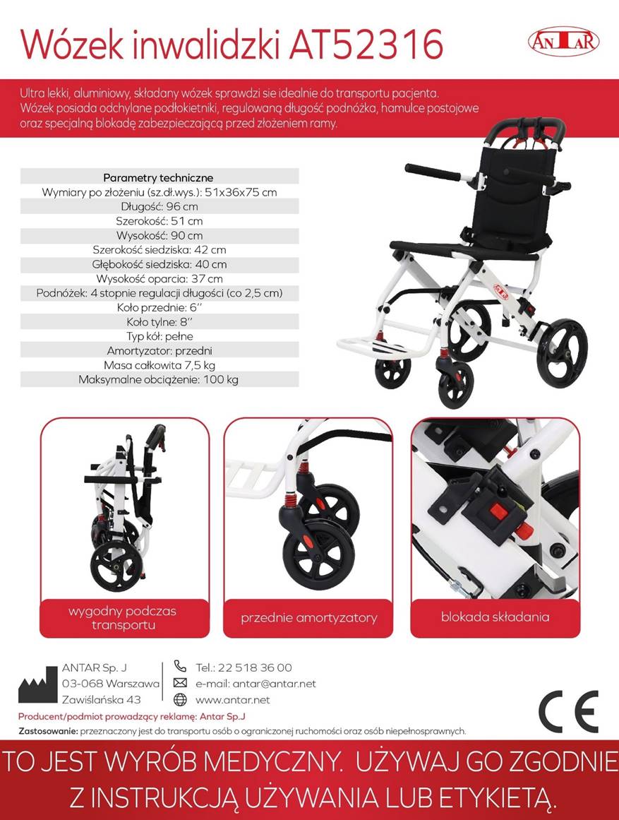 Wózek inwalidzki – lekki wózek transportowy AT52316