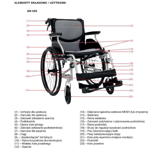Wózek inwalidzki magnezowy MAGNESIUM AR-355
