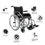 - uchylne podłokietniki uchylne i odpinane podnóżki z regulacją wysokości