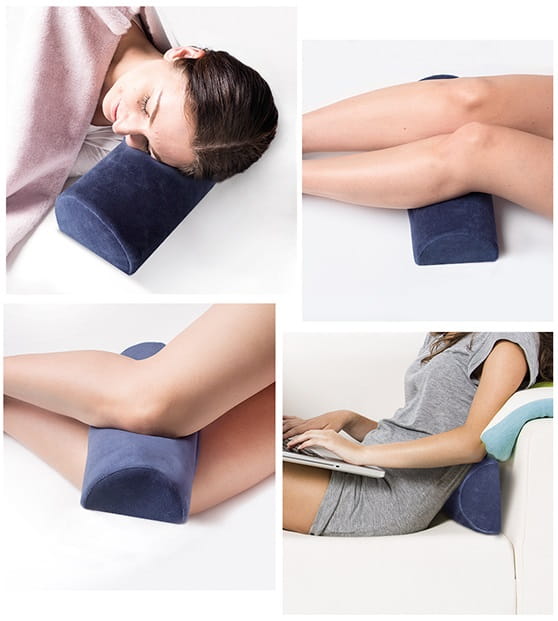 - stanowi podparcie szyi redukując bóle spowodowane nieprawidłowym ułożeniem kręgosłupa w czasie leżenia na plecach. Stanowi również doskonałe podparcie kręgosłupa przy zastosowaniu jako poduszki lędźwiowej.