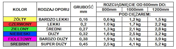 • fioletowa: bardzo duży opór (ćwiczenia fitness i siłowe dorosłych)